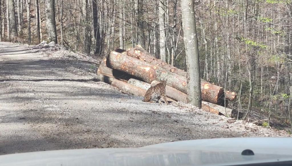 »Risi so se ležerno sprehajali po gozdni cesti in se zabavali na hlodih.« Umaknili so se šele, ko je gozdar stopil iz avtomobila. »Pa še to ne ravno panično,« so zapisali.