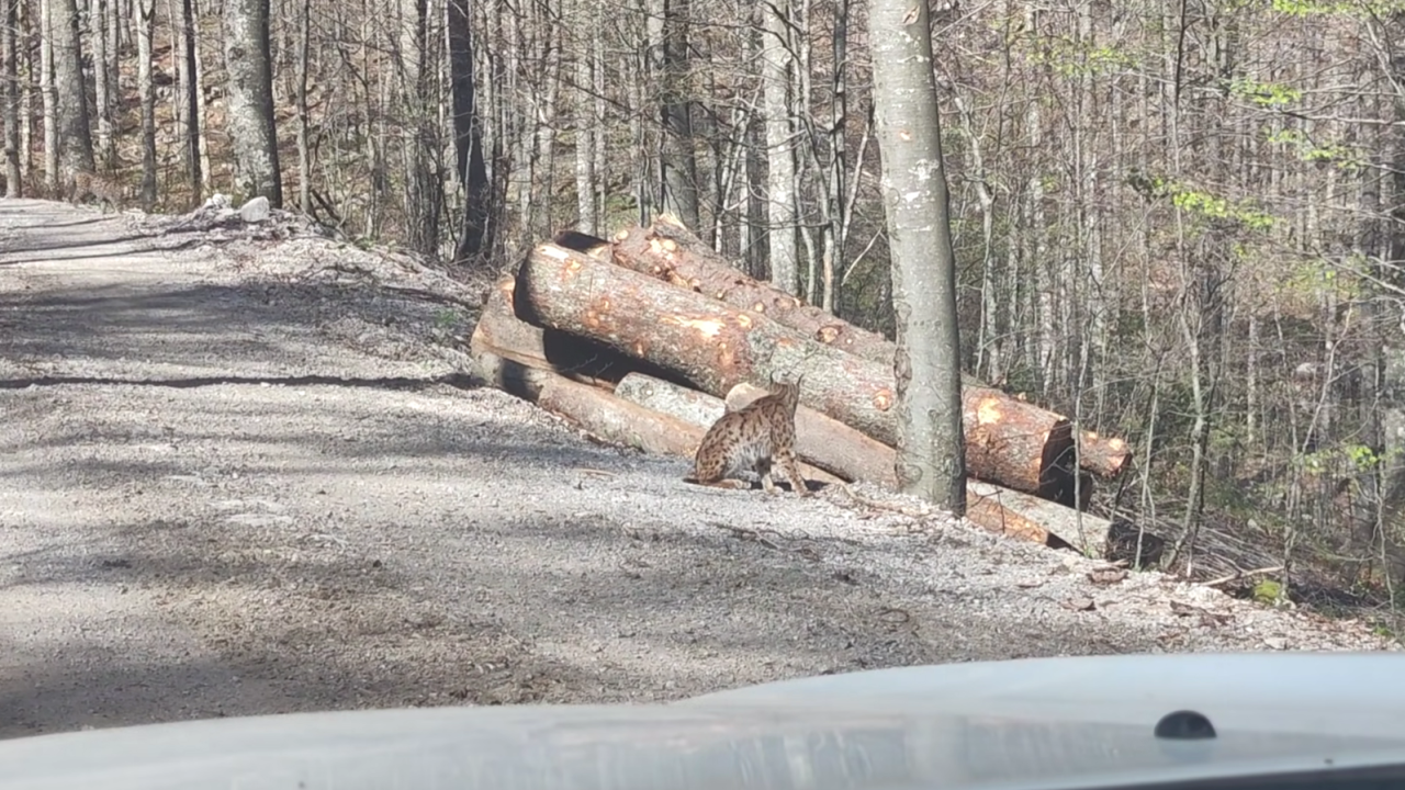 Slovenski državni gozdovi so na družbenem omrežju objavili posnetek gozdarja, ki so ga med opravljanjem dela v gozdu presenetili kar trije risi.