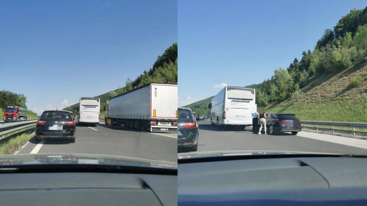 V Facebook skupini »Ustvarimo reševalni pas a avtocestah« so danes objavili fotografijo, kjer je voznik avtobusa na tako imenovanem 'reševalnem pasu' uspel povzročiti nesrečo.