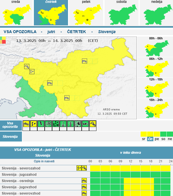 Jutri bo opozorilo razširjeno na skoraj celotno Slovenijo, saj bo veter še pridobil na moči. Izjema bo jugozahod države, kjer bodo razmere nekoliko bolj umirjene.