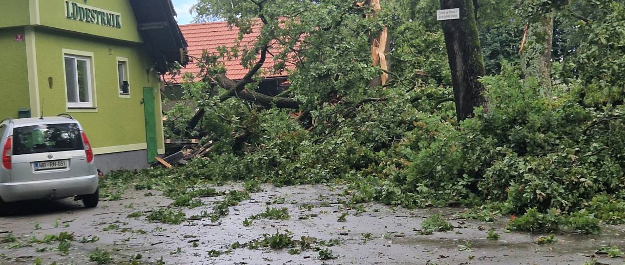 Podiralo je drevesa in odkrivalo strehe, v Mežici je meteorna voda zalila skladišče podjetja. Vročina in nevihte so napovedane tudi za danes.