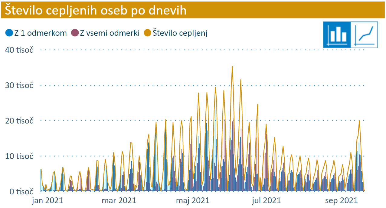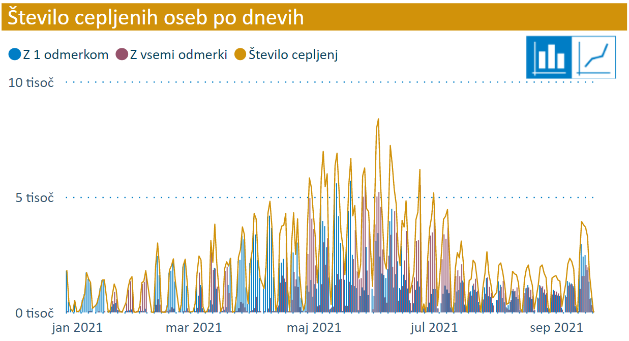 V Sloveniji je s prvim odmerkom cepljenih več kot milijon oseb, in sicer 1.008.175 ljudi, kar znaša 52 odstotkov. Z vsemi odmerki je cepljenih 46 odstotkov prebivalcev.