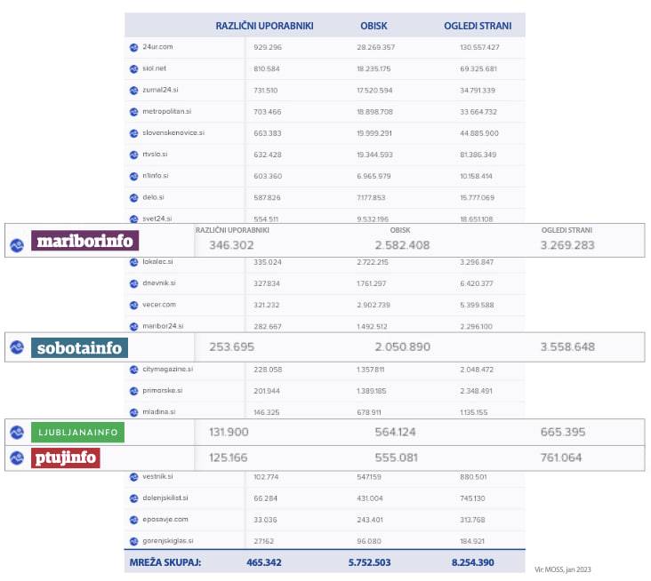 Spletni mediji Mariborinfo, Sobotainfo, Ptujinfo in Ljubljanainfo, ki so del največje slovenske mreže regionalnih spletnih medijev, so vsak v svojem okolju najbolj bran spletni medij.