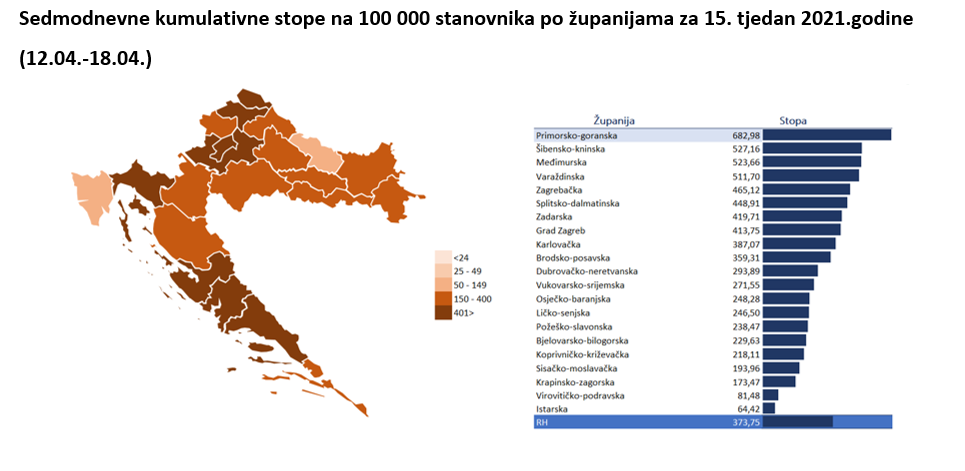 Slabše številke ima le še Švedska in Ciper. Najbolj je na udaru ravno Primorsko-goranska županija, ki obsega Reko, Crikvenico, Opatijo, pa tudi otoke Krk, Rab in Cres. Tam so v zadnjih sedmih dneh zabeležili 683 okužb na 100.000 prebivalcev.