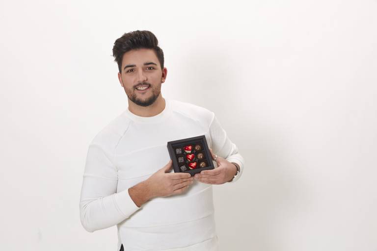 V svoji božični zgodbi je Žiga Deršek združil svoje tri ljubezni; zaročenko Evo, glasbo in čokolado.