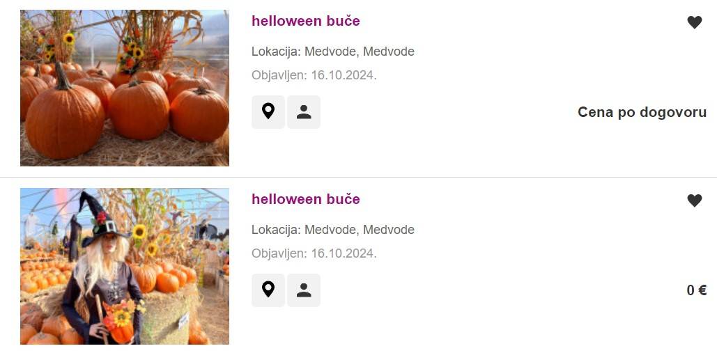 Se pa na Bolhi najde veliko oglasov za buče, v katerih prodajalci niso definirali točne cene, ampak se ta določi po dogovoru.