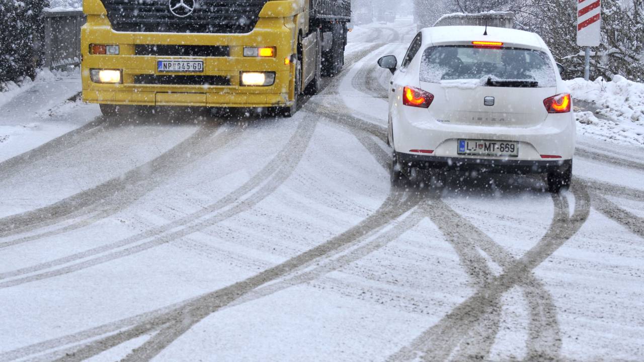 Na cestah številni zdrsi, potovalni časi zaradi snega daljši