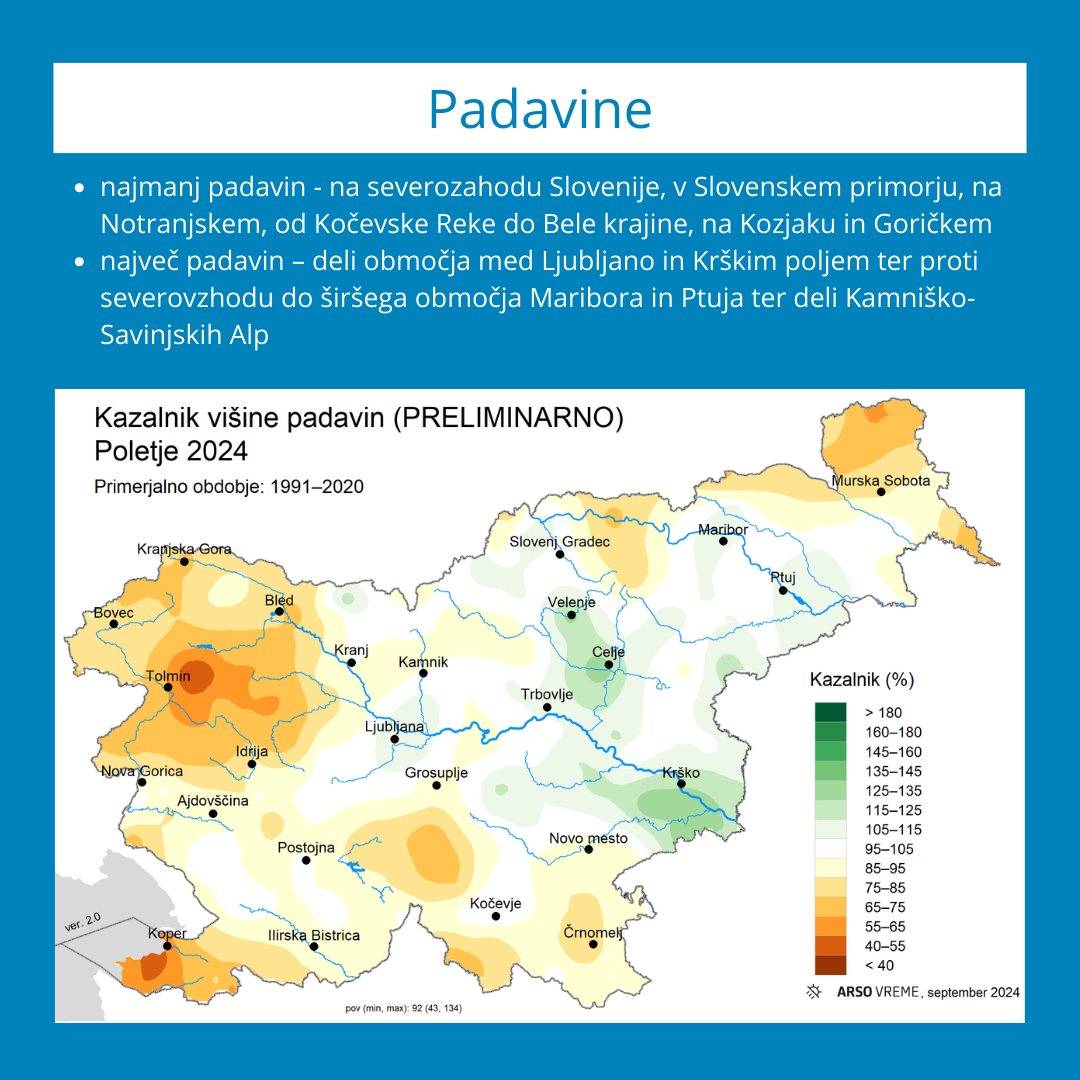 Ta je bila na državni ravni pod dolgoletnim povprečjem, natančneje je znašala 92 odstotka dolgoletne povprečne vrednosti. To poletje se tako uvršča med tretjino najbolj suhih poletij od leta 1950.