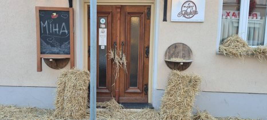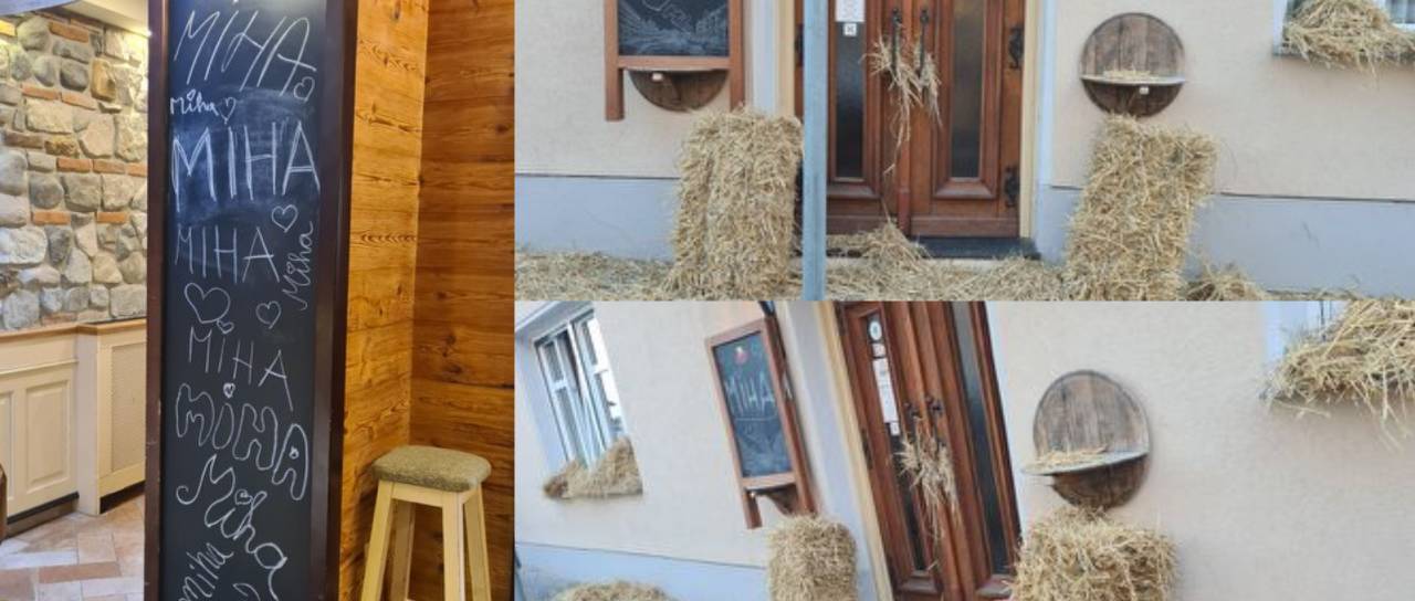 Vhod v gostilno je namreč zasipan s slamo.