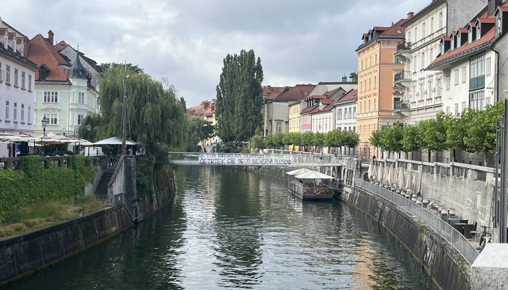V noči s srede na četrtek se je v središču Ljubljane, na enem izmed mostov, pojavil napis. Glede na zapisano, so ga najverjetneje izobesili člani navijaške skupine Green Dragons.