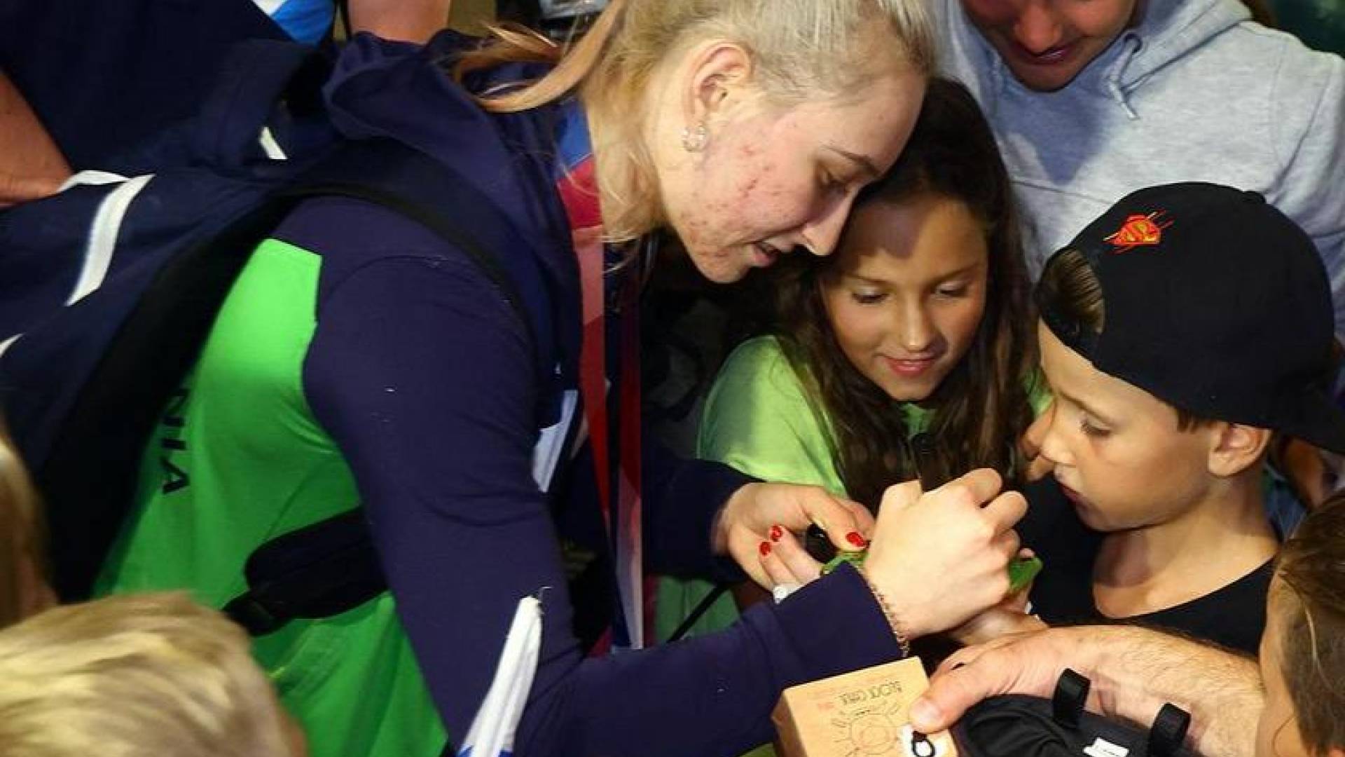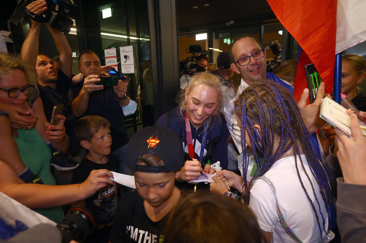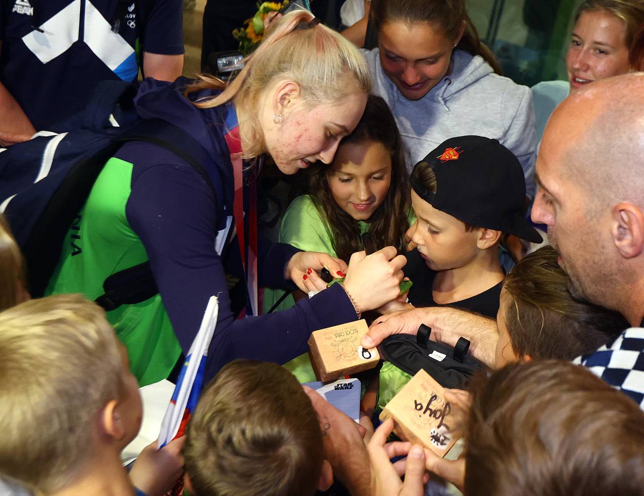 Mlado plezalko so včeraj pozno zvečer pričakali njeni navijači in najbližji.