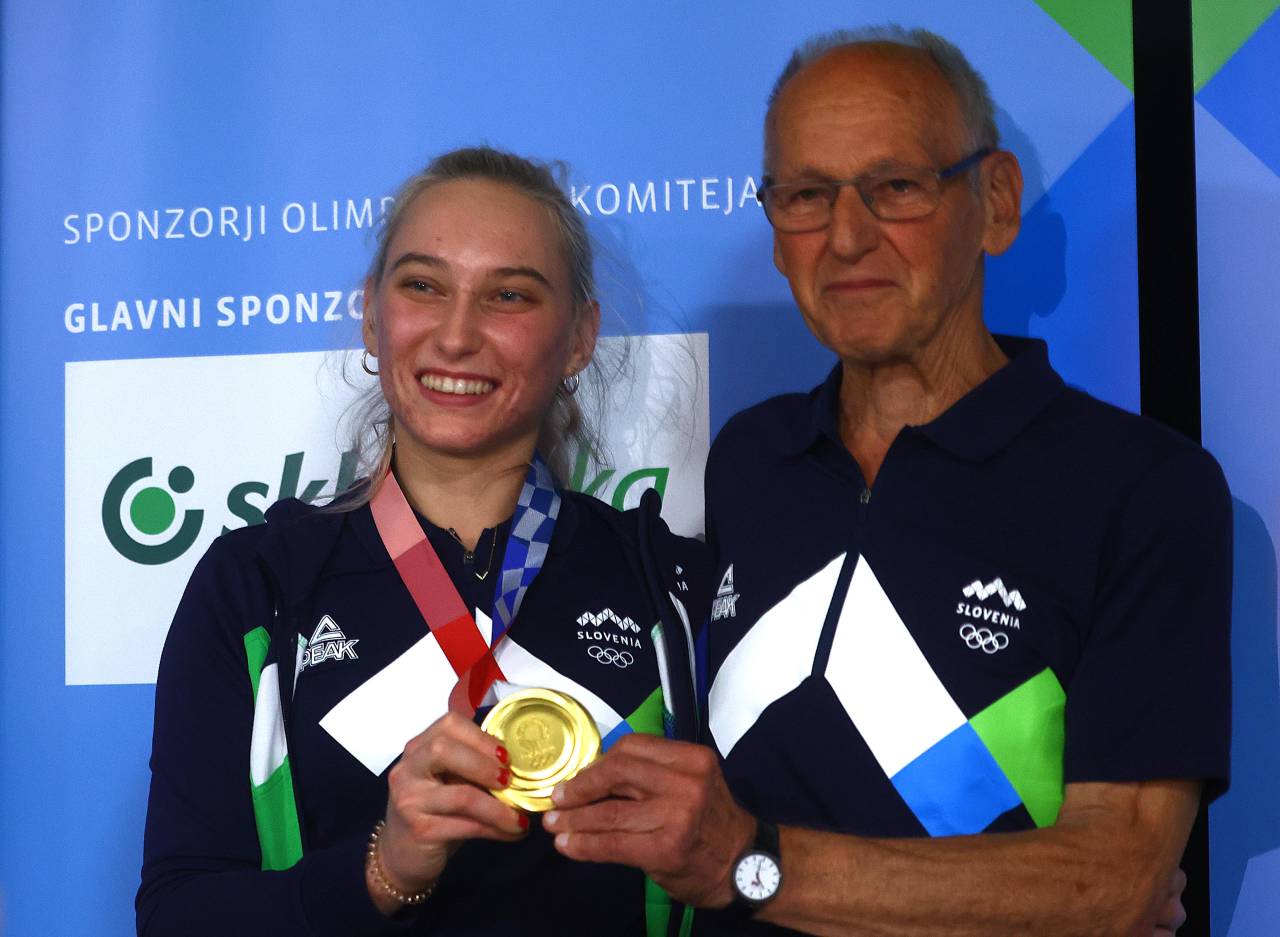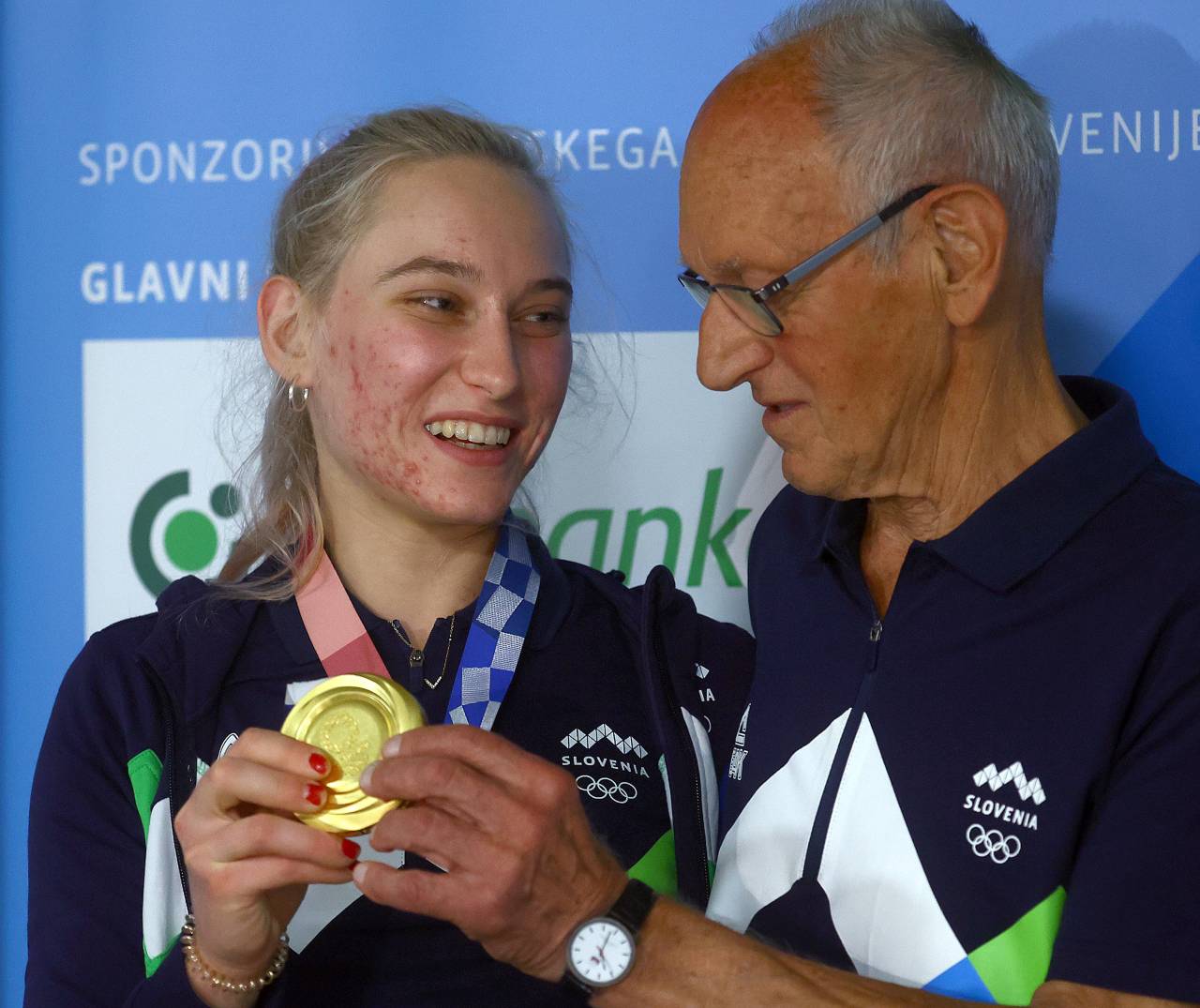 Če je bila Korošica utrujena, pa tega ni pokazala: takoj je z nasmehom na obrazu pozdravila podpornike in stopila pred novinarje, družbo ji je delal tudi legendarni slovenski telovadec Miro Cerar.