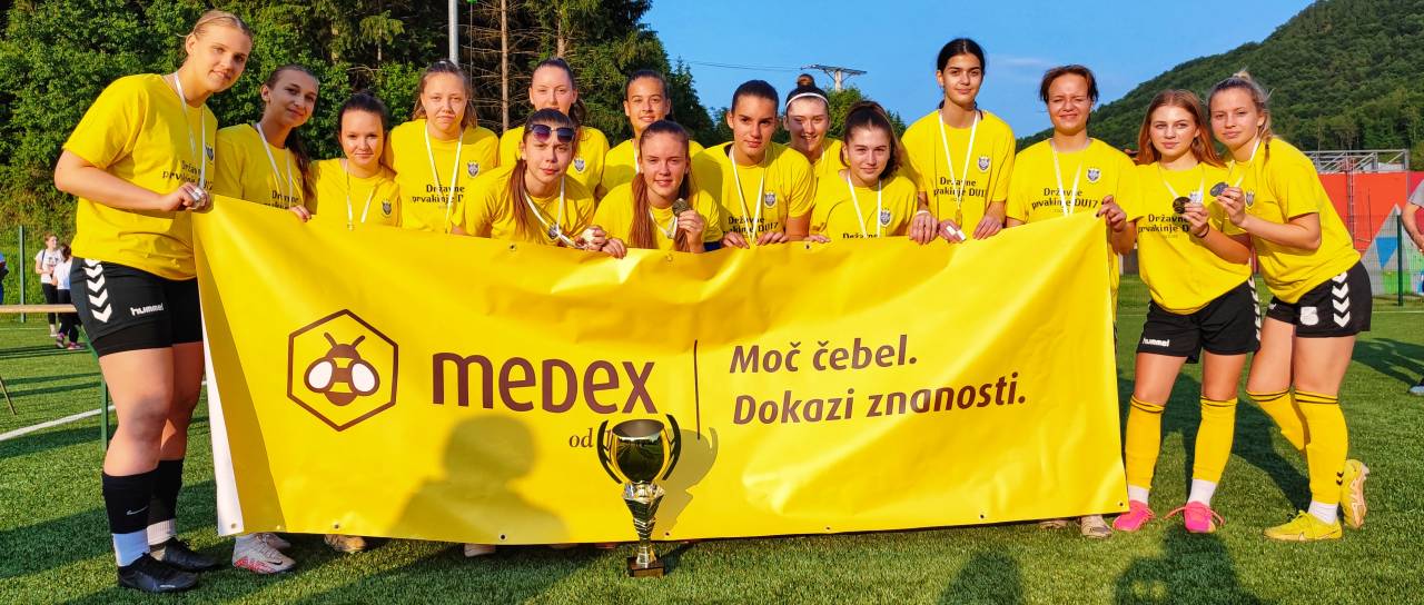 Nogometašice kadetske selekcije ŽNK Radomlje Medex so po zadnji tekmi sezone v Rogatcu dvignile lovoriko za naslov državnih prvakinj. Rumene so dobile 15 od skupno 16 tekem prvenstva.