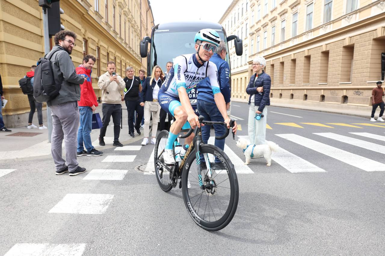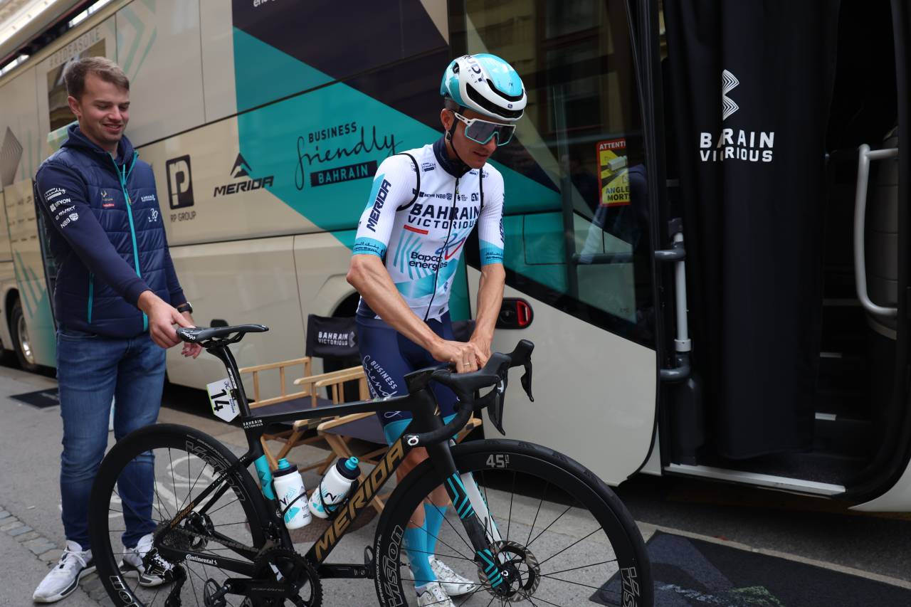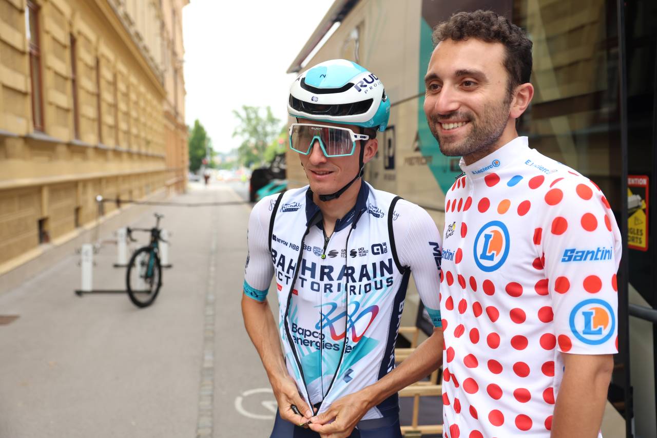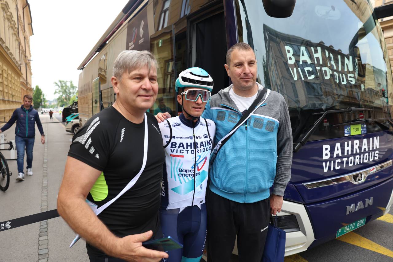 Mohorič se je včeraj z moštvenimi kolegi iz ekipe Bahrain - Victorious veselil zmage nemškega sprinterja Phila Bauhausa. Ta bo danes vozil v zeleni majici vodilnega kolesarja na dirki.
