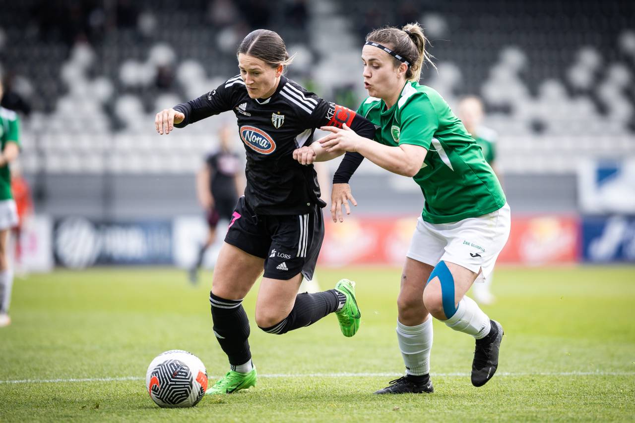 Prvo polfinalno dejanje v soboški Fazaneriji se je končalo s slavjem črno-belih. Nogometašice ŽNK Mura Nona so po avtogolu Jone Javorič dobile tudi pokalni obračun z ŽNK Olimpijo, v Stožicah pa bodo 23. maja napadale 11. pokalni naslov.