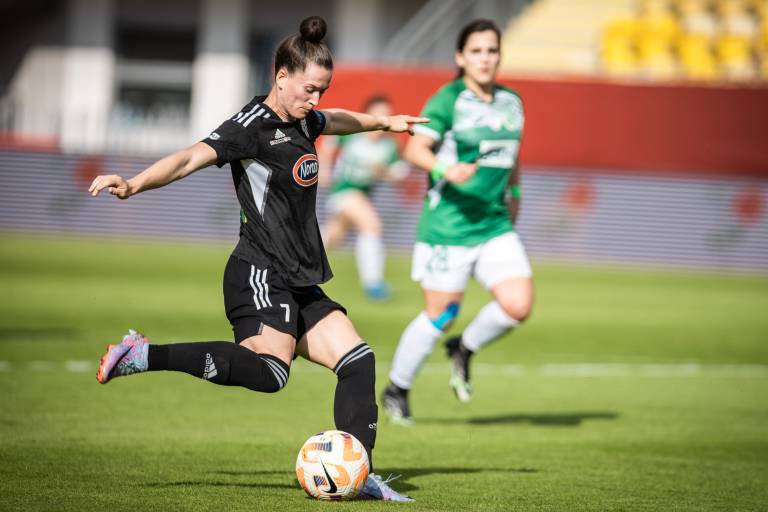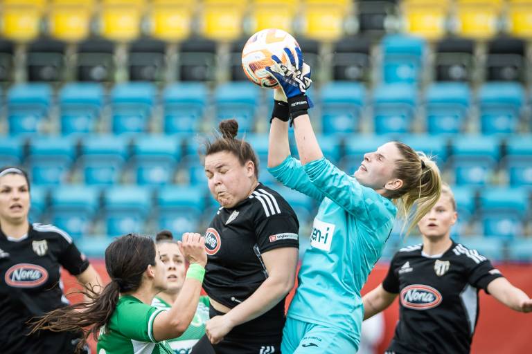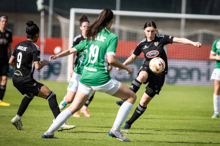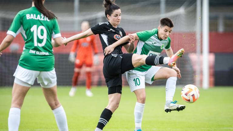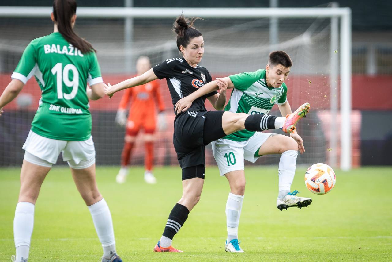 16' PRILOŽNOST! Iva Kocijan se je izkazala po kotu Olimpije, strel Sare Makovec z glavo je preusmerila mimo desne vratnice.