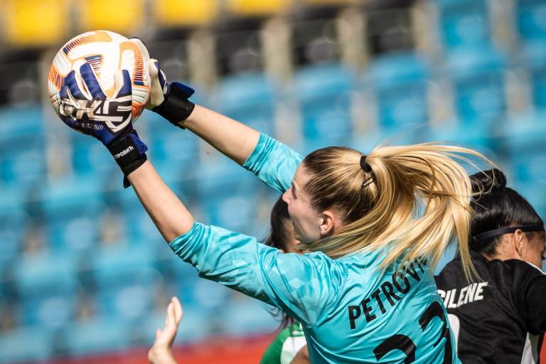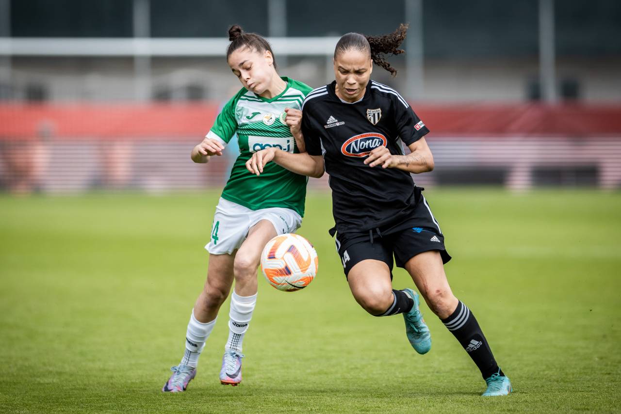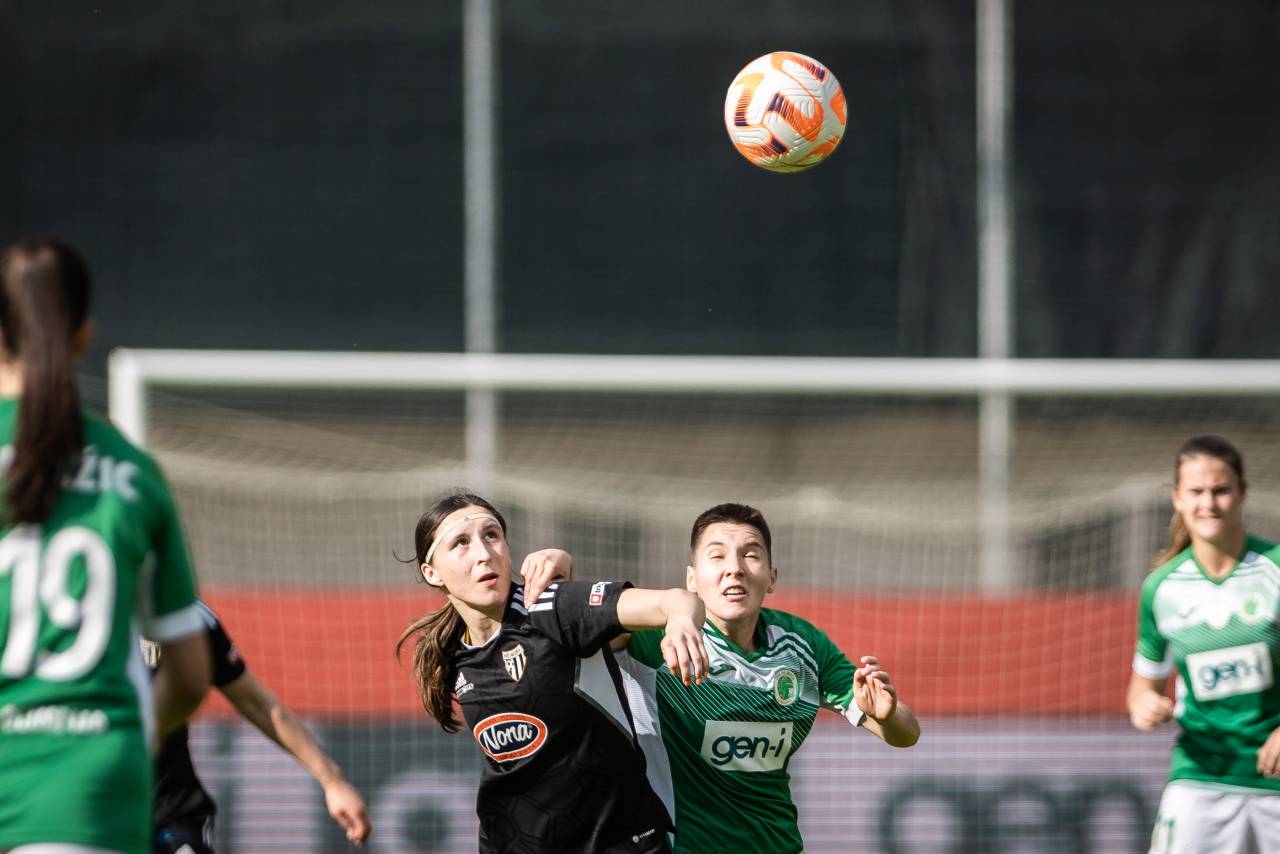 7' PRILOŽNOST! Kaja Korošec je s podajo v prostor zaposlila Josy Matos, ki je z desne strani sprožila v daljši kot, Jovana Petrović pa je žogo preusmerila izven okvirja vrata. V nadaljevanju akcije je ljubljanska vratarka ujela podajo Anje Eferl.