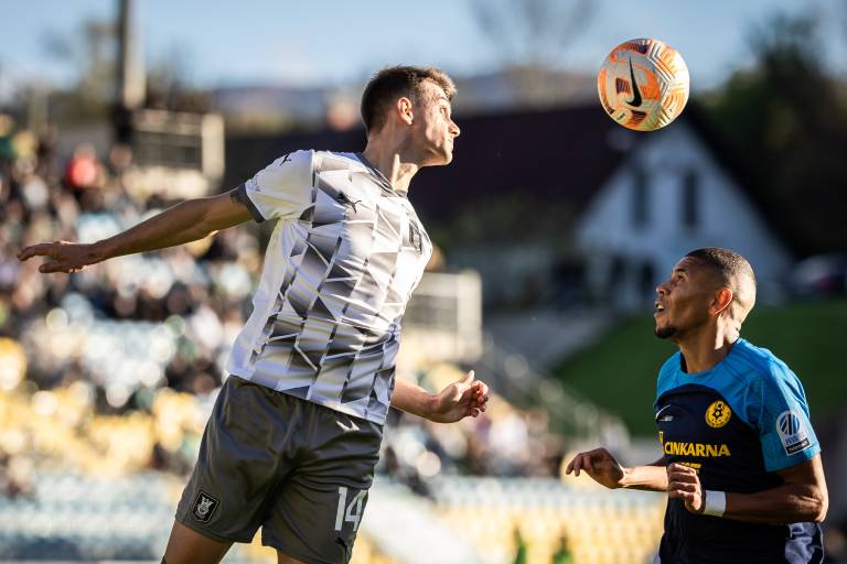 73' PRILOŽNOST! Damjan Vuklišević je bil nevaren tudi po kotu, z glavo je meril mimo leve vratnice ljubljanskega gola.