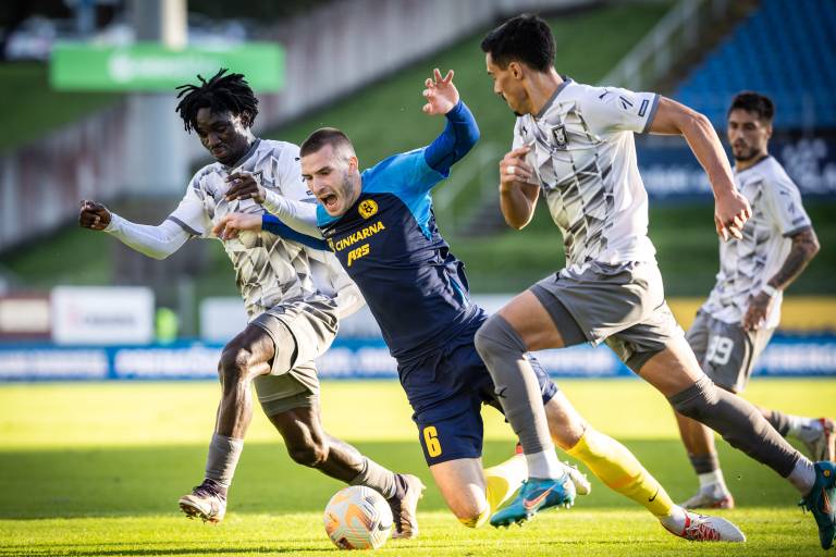 79' Žan Karničnik je meril z desne strani igrišča, a se Denis Pintola znova ni pustil presenetiti.
