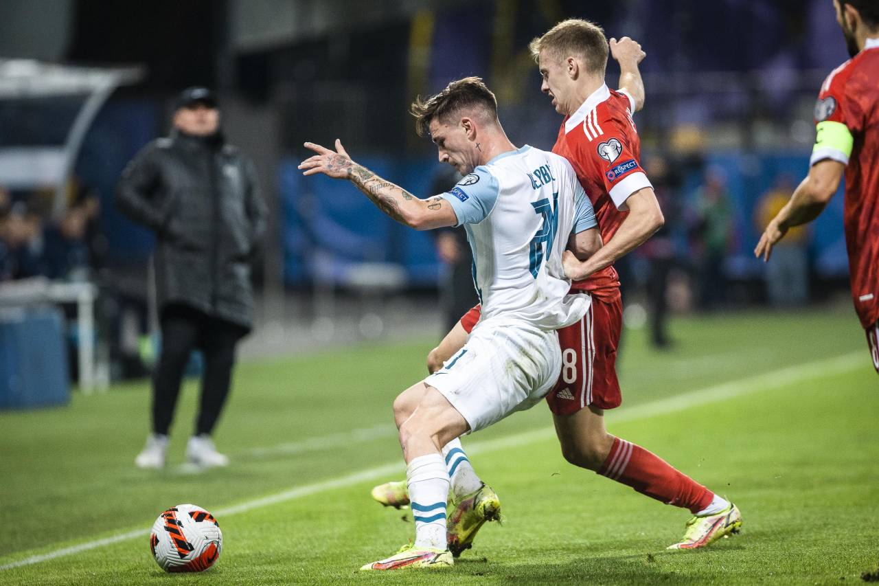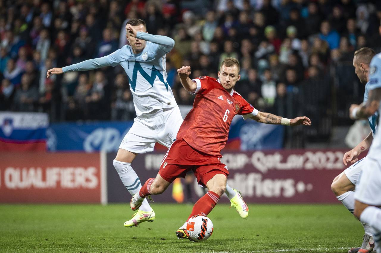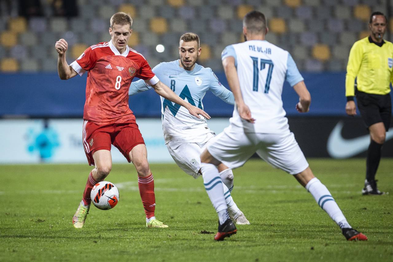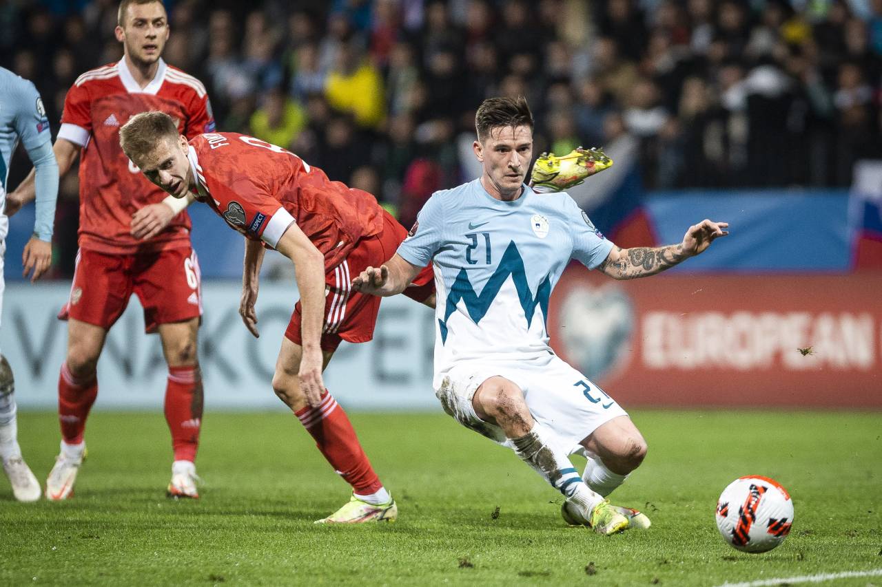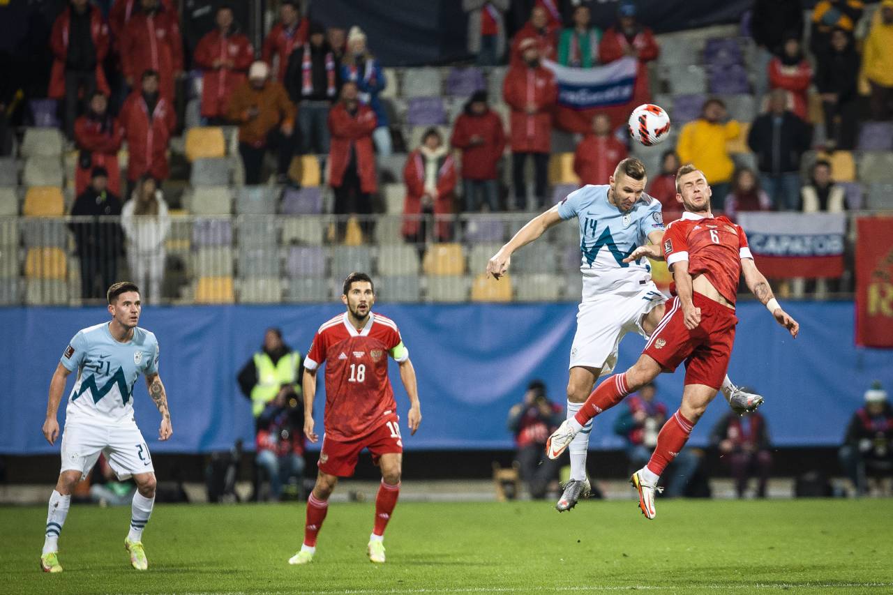 Slovenska nogometna reprezentanca je v Mariboru na osmi tekmi kvalifikacij za svetovno prvenstvo 2022 izgubila proti Rusiji z 1:2 (1:2).
