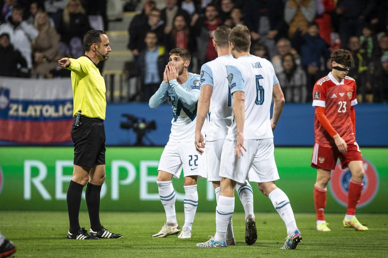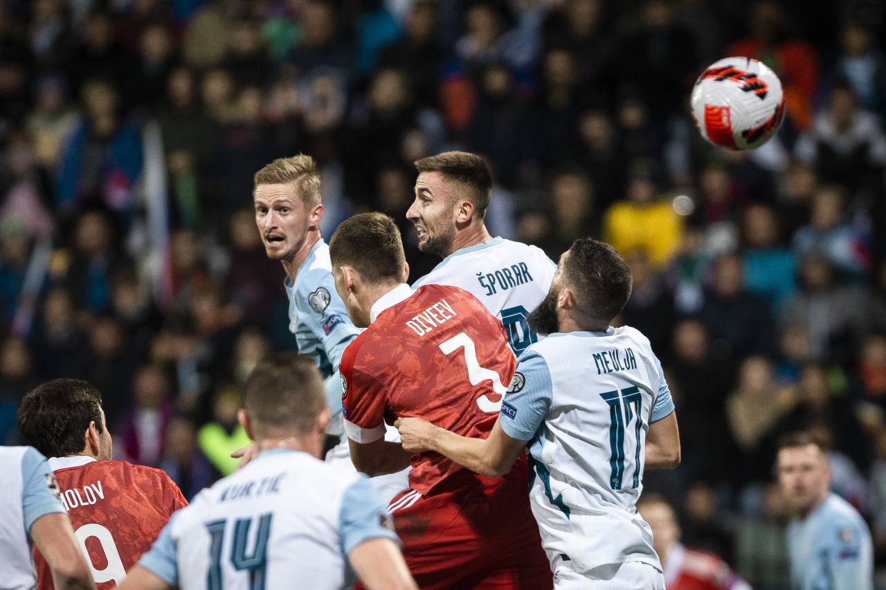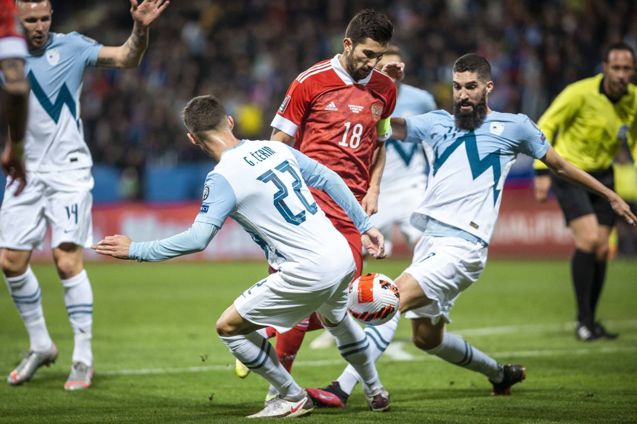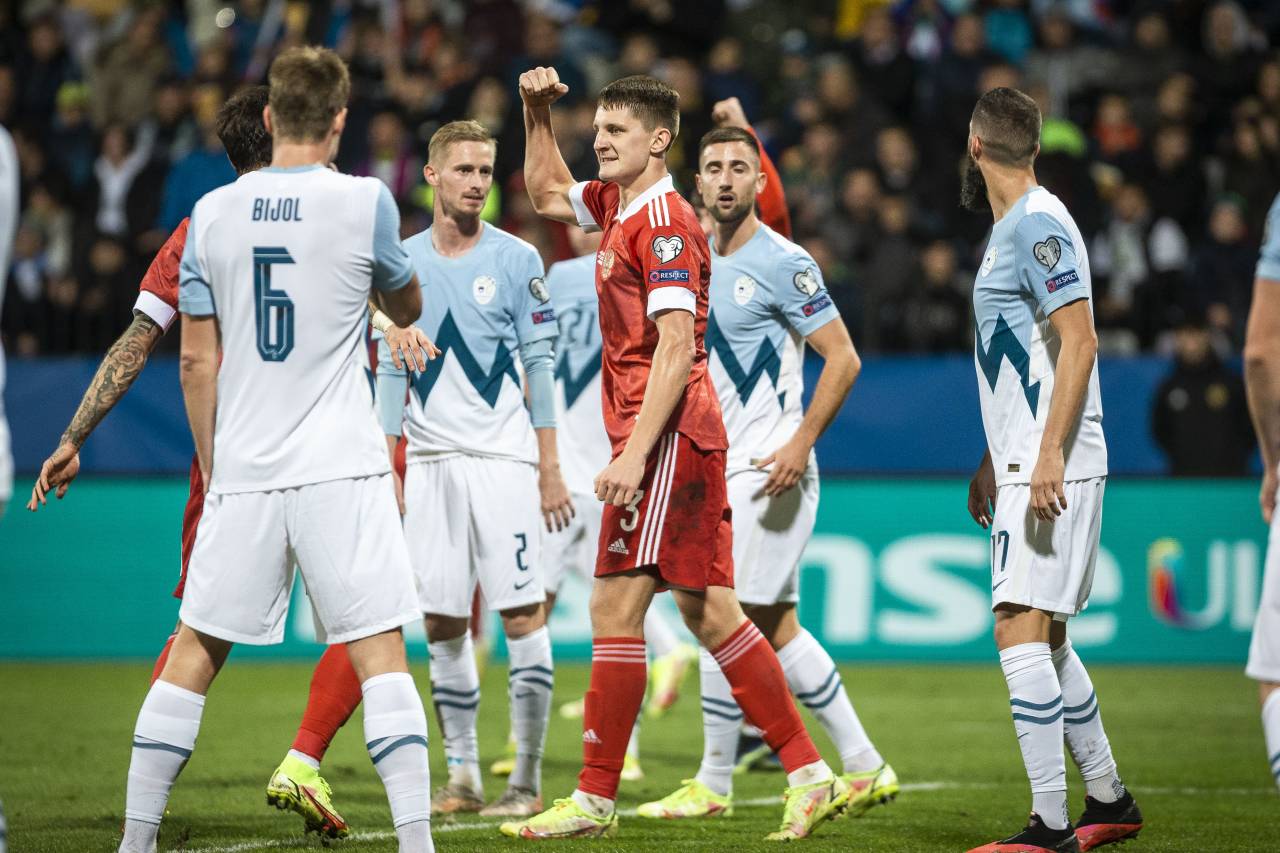 Slovenska nogometna reprezentanca je v Mariboru na osmi tekmi kvalifikacij za svetovno prvenstvo 2022 izgubila proti Rusiji z 1:2 (1:2).