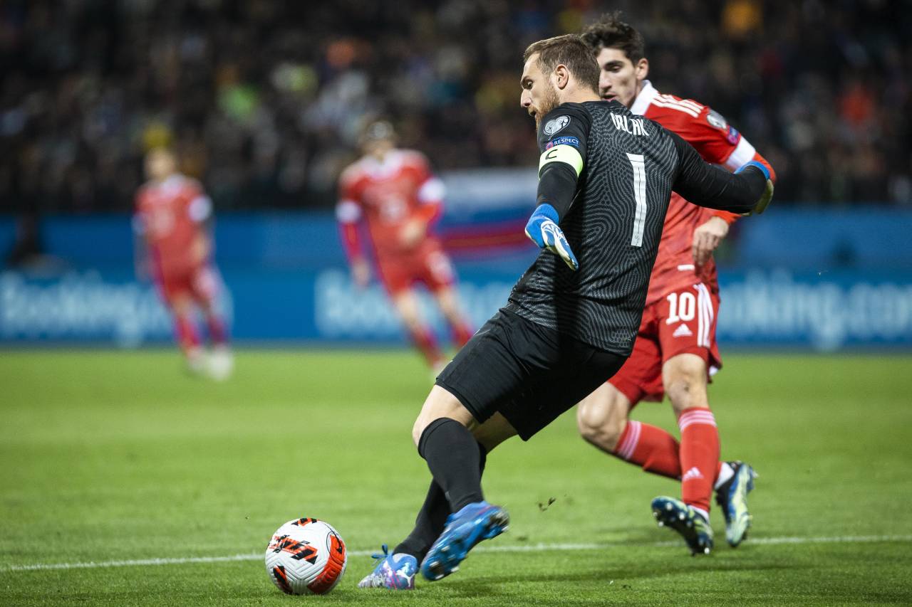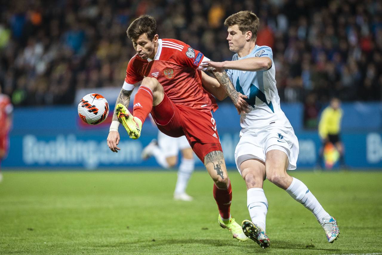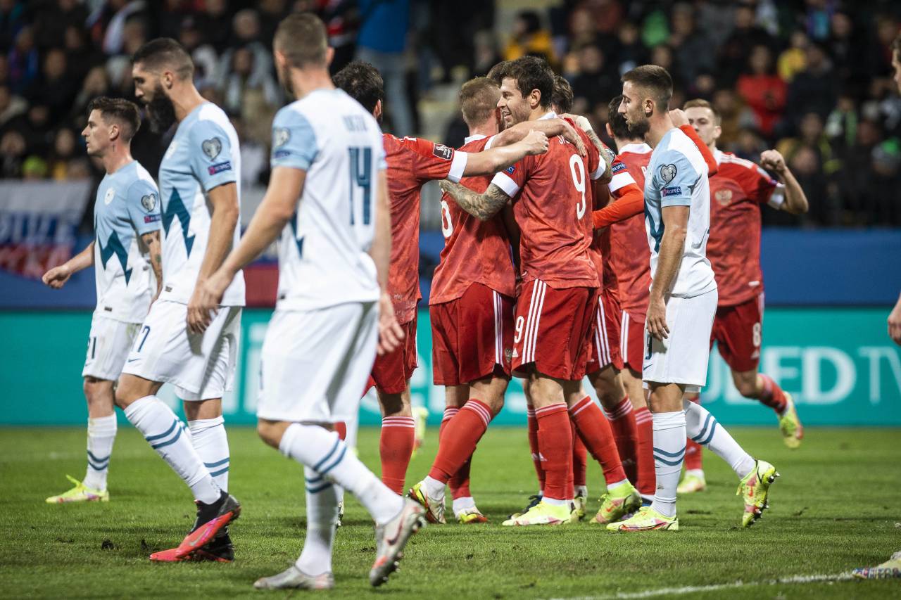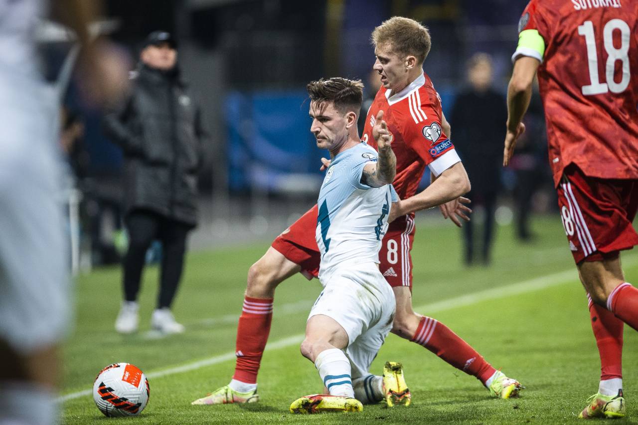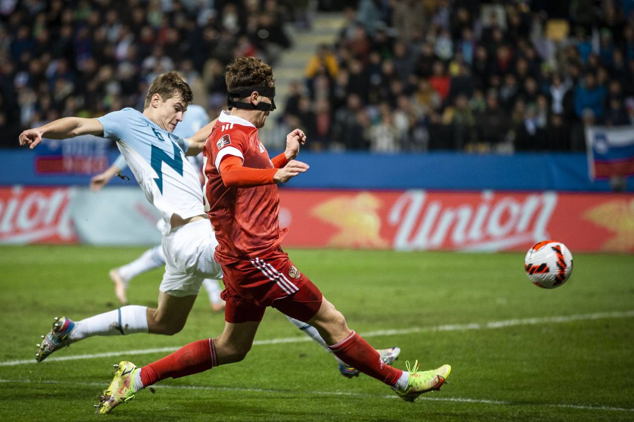 Slovenska nogometna reprezentanca je v Mariboru na osmi tekmi kvalifikacij za svetovno prvenstvo 2022 izgubila proti Rusiji z 1:2 (1:2).