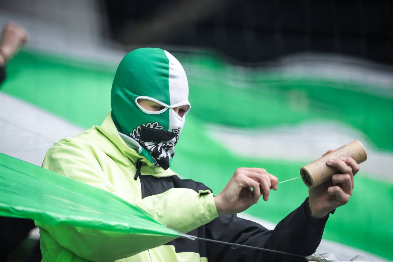86' Krajša prekinitev, saj so člani navijaške skupine Viole na zelenico zalučali kar nekaj pirotehničnih sredstev.