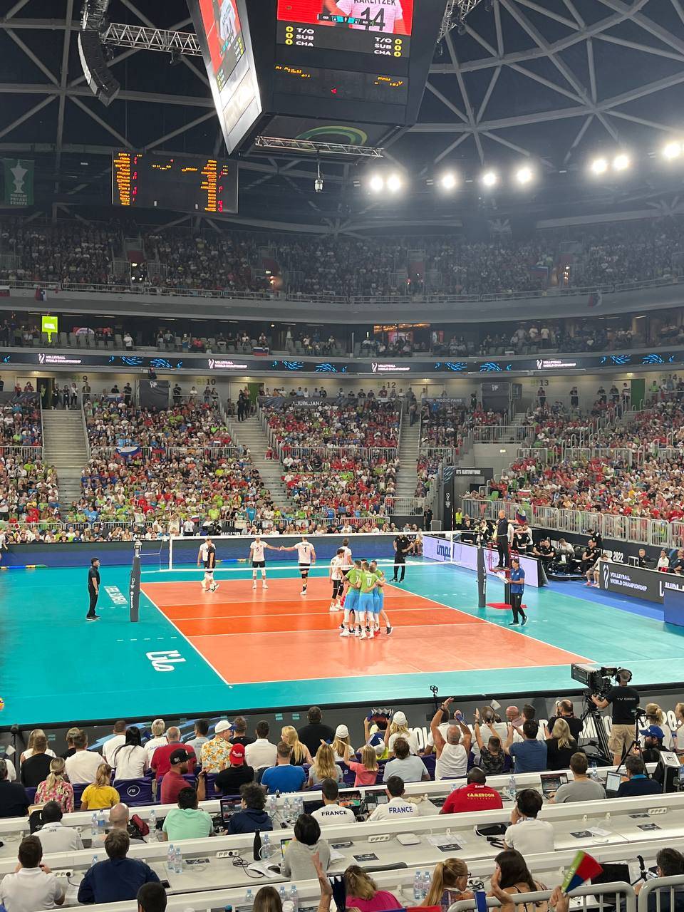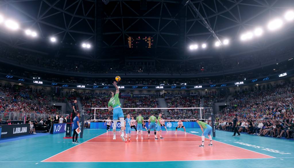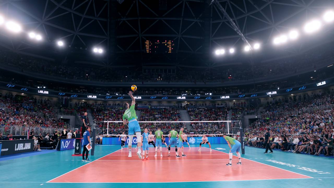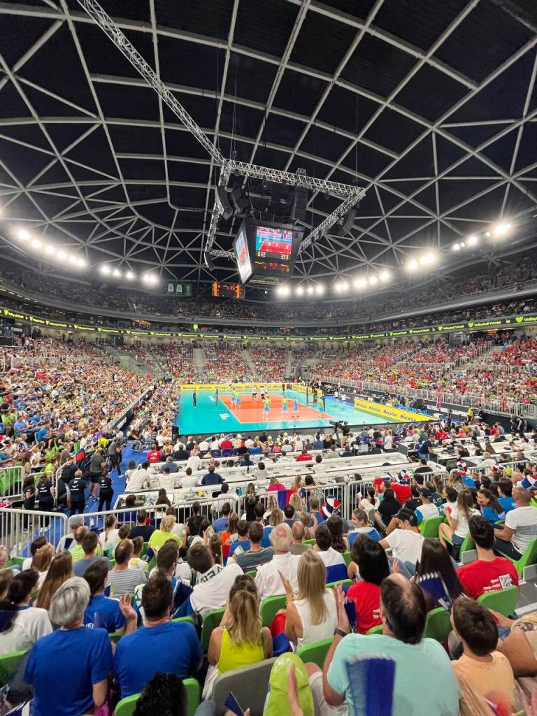 Slovenska odbojkarska reprezentanca si je na domačem prvenstvu zagotovila nastop v osmini finala. V tretjem krogu je v razprodanih Stožicah s 3:0 (16, 22, 17) prepričljivo premagala Nemčijo, s tem pa za Francijo osvojila drugo mesto v skupini.