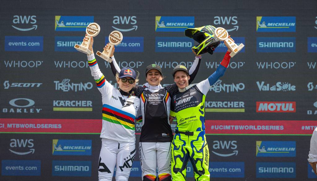 Monika Hrastnik se je znova povzpela na oder za zmagovalce svetovnega pokala v gorskem kolesarstvu.