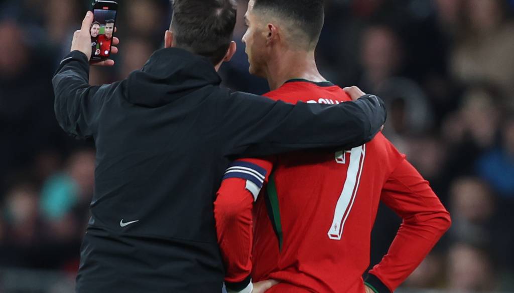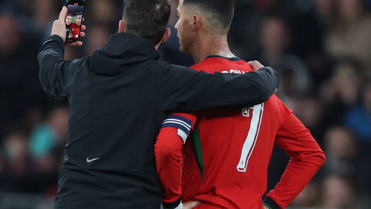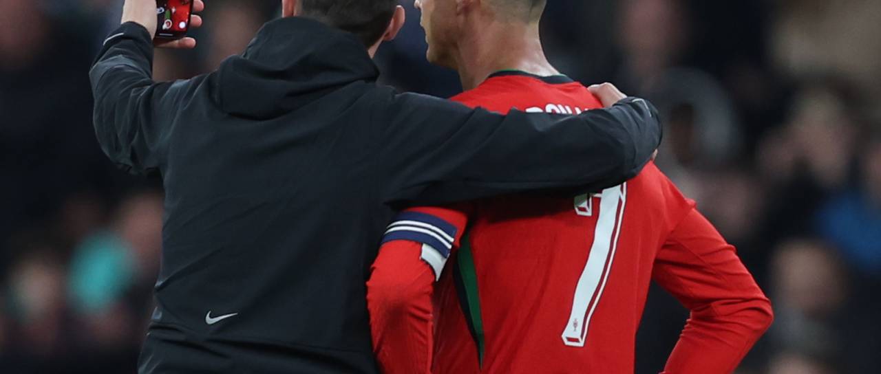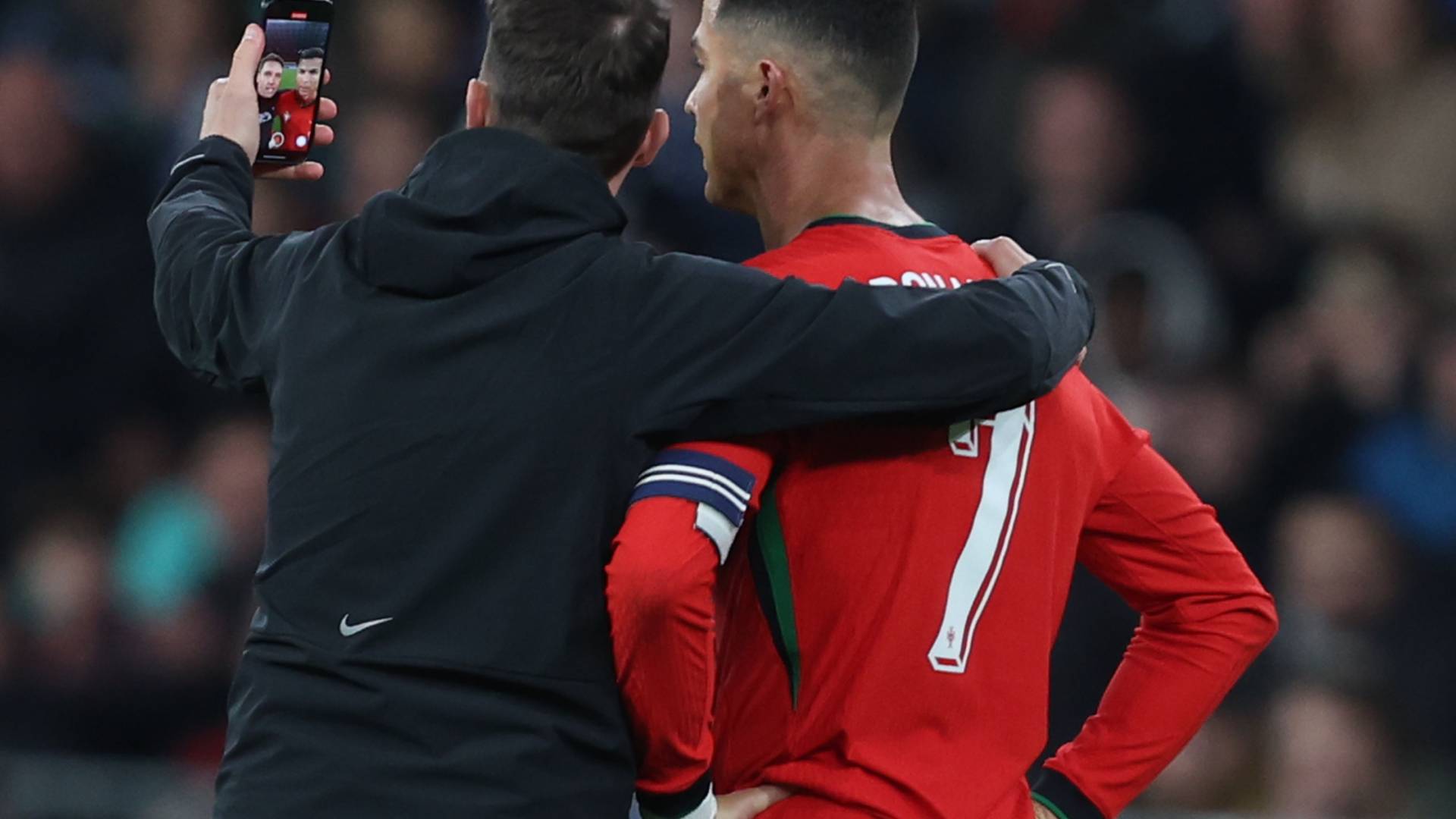 V 43. minuti včerajšnje prijateljske tekme med nogometnima reprezentancama Slovenije in Portugalske, ki je dobila gostiteljica, na igrišče stekel navijač, se fotografiral s Cristianom Ronaldom in ga poljubil na lice.