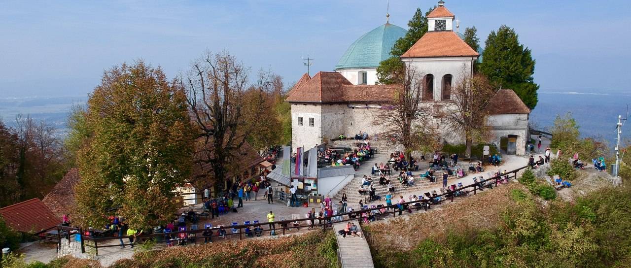 Šmarna gora, ki je visoka 669 metrov, je osamelec na severu Ljubljanskega polja.