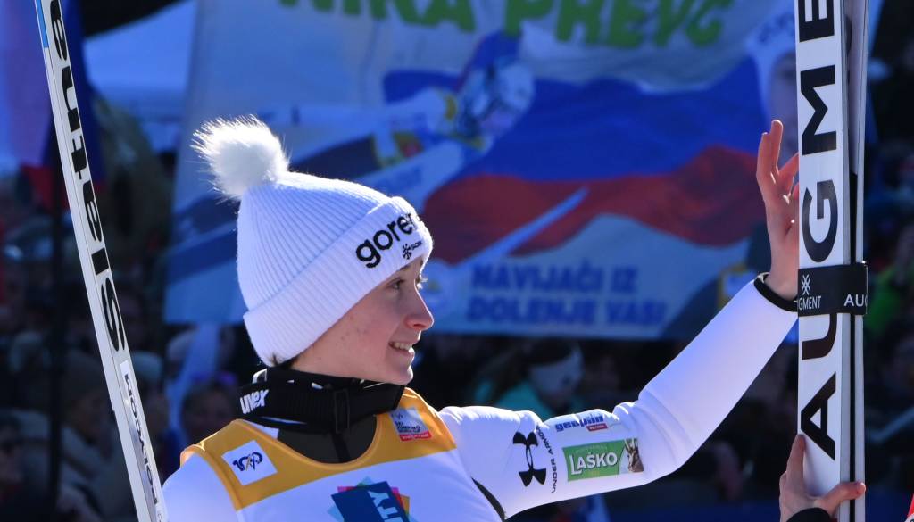 Zdaj ima še ne 19-letna Prevc tri tekme pred koncem sezone pred najbližjo zasledovalko, danes tretjo Avstrijko Evo Pinkelnig (256,8 točke), v skupni razvrstitvi svetovnega pokala 194 točk prednosti.