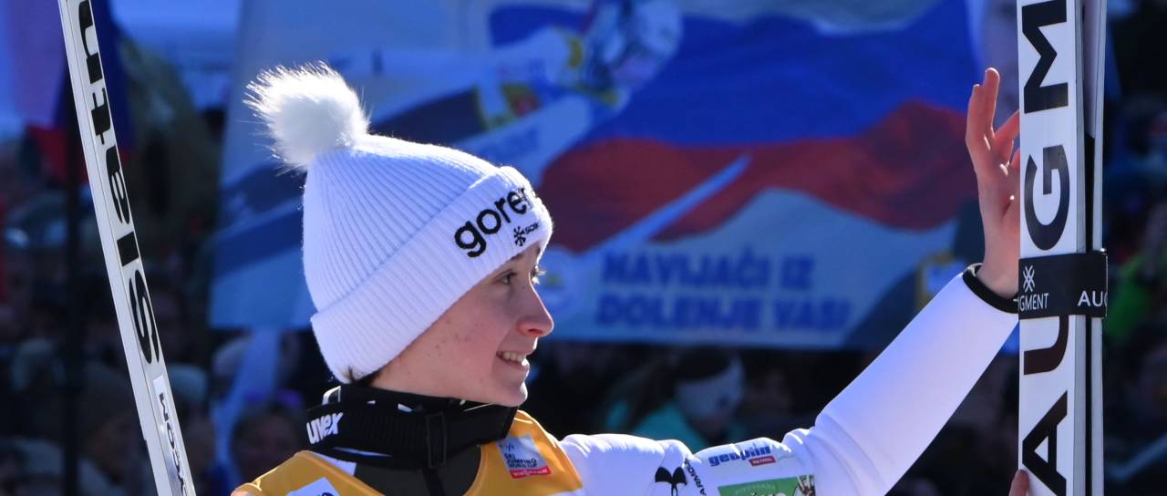 Najboljša smučarska skakalka to zimo Nika Prevc (260,2 točke) je zmagovalka četrte tekme norveške turneje na veliki skakalnici v Trondheimu.