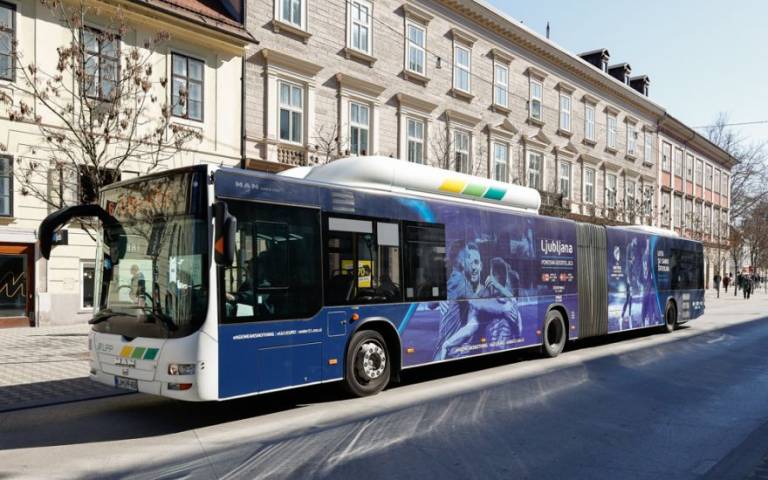 Kot smo že poročali, Po mestu vozi tudi UEFA mestni avtobus. Odet je v barve prvenstva.