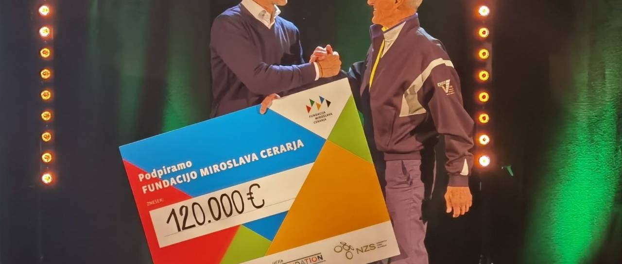Aleksander Čeferin je po dobrodelni nogometni tekmi Fundaciji Miroslava Cerarja predal ček v višini 120 tisoč evrov, ki bodo namenjeni športnemu udejstvovanju otrok iz socialno šibkega okolja. Ob Čeferinu sta spregovorila tudi Luis Figo in Tina Maze.