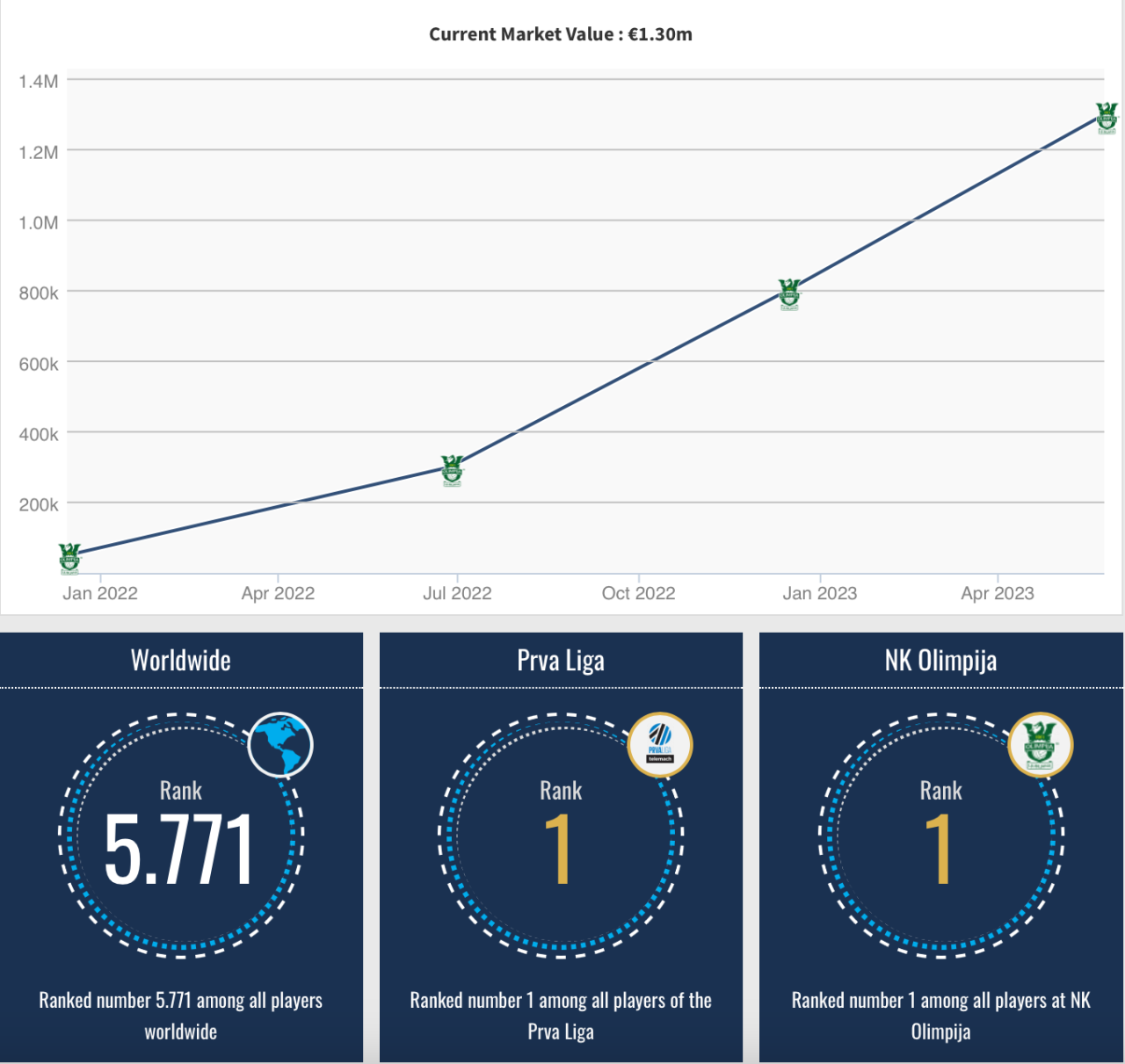 Njegov napredek je lepo razviden tudi iz grafa, ki prikazuje rast Ratnikove vrednosti skozi leta. V primeru, da se bo obetavni branilec v letošnji sezoni dobro izkazal tako v slovenskem prvenstvu kot na preostalih tekmah evropske Konferenčne lige, pa bi lahko prihodnje poletje Olimpijo zapustil tudi za rekordno odškodnino zadnjih sezon in s tem lepo napolnil klubske blagajne.