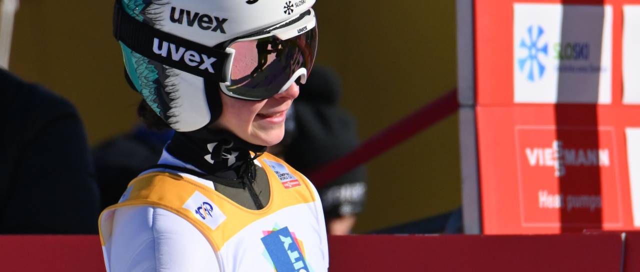 Nika Prevc se veseli nove zmage. Vodilna skakalka svetovnega pokala je zdaj s šestimi zmagami najuspešnejša Slovenka, uspeh domačih skakalk pa je s tretjim mestom dopolnila še Nika Križnar.