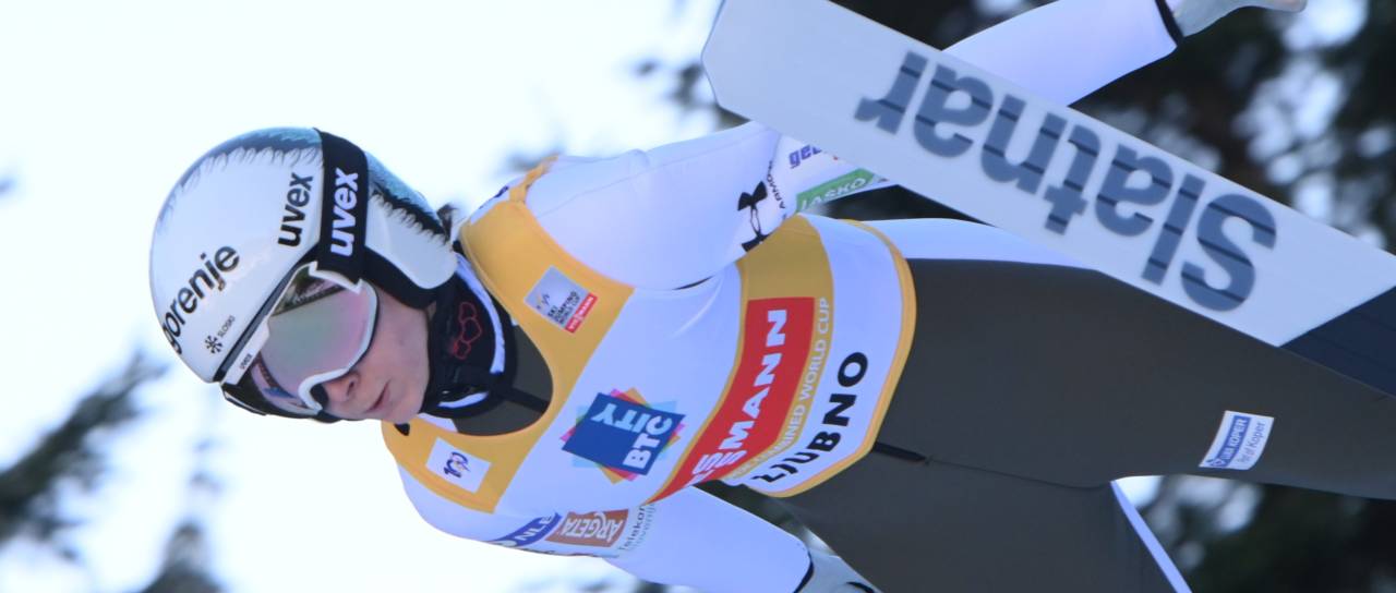Nika Prevc do jubilejne desete zmage in vodstva na turneji.