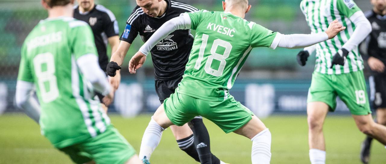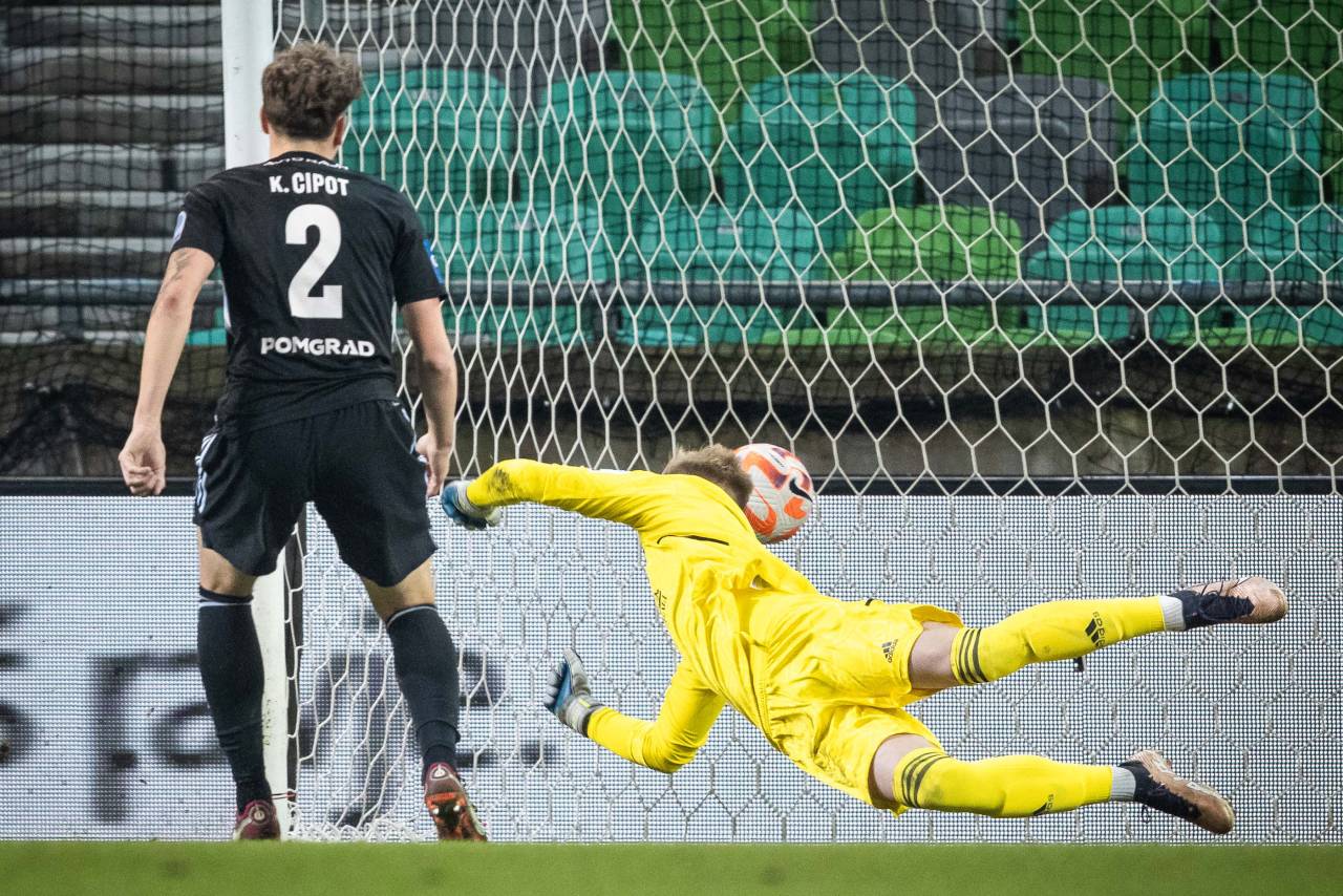38' Vodstvo Olimpije. Zadel je 20-letni Svit Sešlar, a je bil gol razveljavljen zaradi prepovedanega položaja, ostaja 0:0