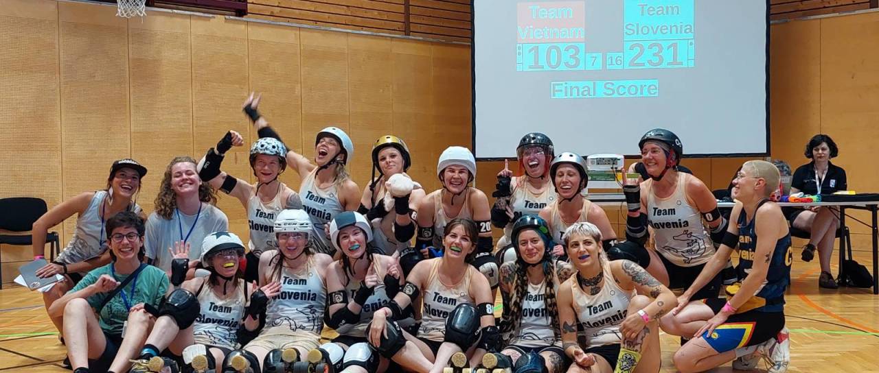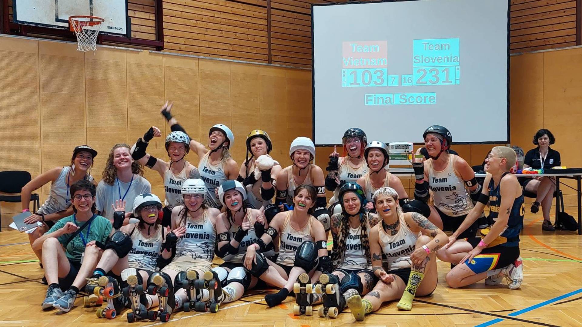 Slovenska reprezentanca v roller derbyju je prejšnji teden prvič nastopila na svetovnem prvenstvu. Premagale so Vietnam, kljub porazoma proti Portugalski in Portoriku pa navdušile z borbenostjo in izvirno maskoto.