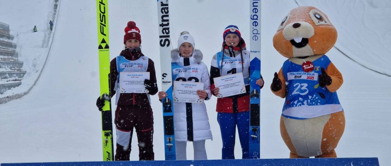 Nika Prevc je v Planici osvojila zlato medaljo v smučarskih skokih in ubranila lanskoletni naslov iz Olimpijskega festivala evropske mladine v Lahtiju.