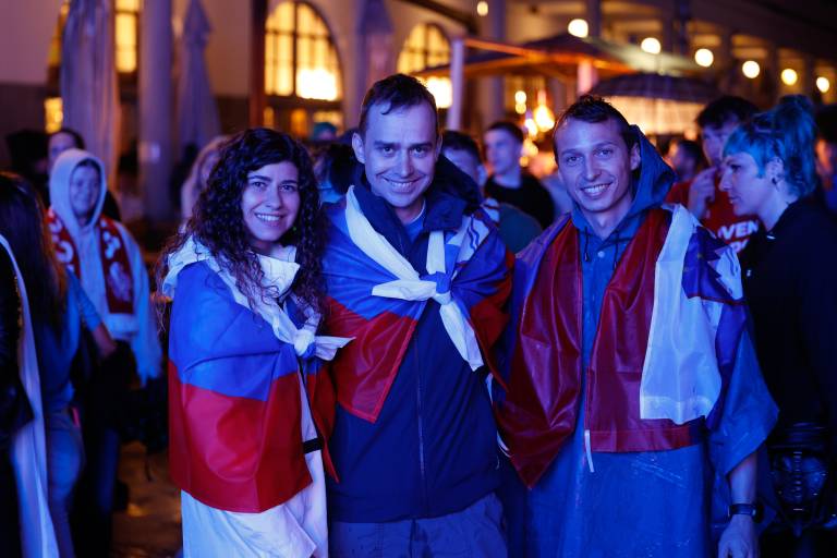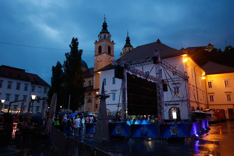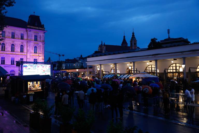 V prestolnici je že ves čas evropskega prvenstva organiziran ogled tekem na velikem zaslonu na Pogačarjevem trgu, kjer je tudi danes, tako kot že med prejšnjimi tremi tekmami naše reprezentance, urejena navijaška cona.