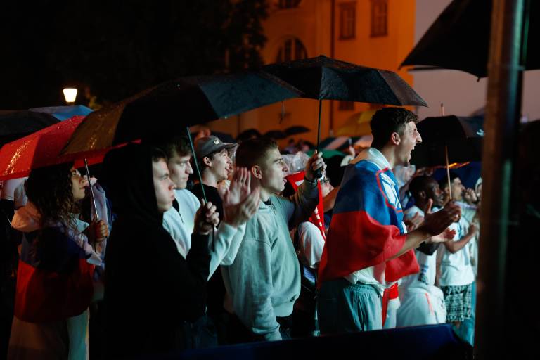 Edino, kar bi lahko pokvarilo imenitno navijaško vzdušje, so dežne kaplje; vremenska napoved je za zdaj slaba. Že popoldne so se od severa začele pojavljati krajevne plohe in nevihte, tudi močnejše nevihte s točo in sunki vetra.