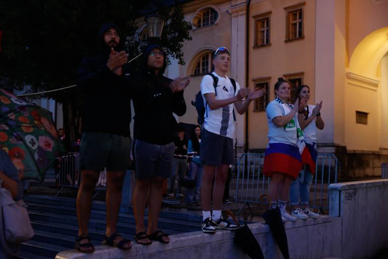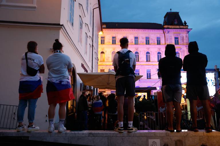 Navijači znova na Pogačarjevem trgu