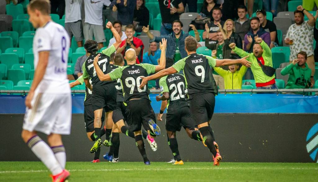 50' LOV NA IZENAČENJE, zdaj Požeg Vancaš s podajo pred gol proti Šturmu, toda nekoliko previsoko.
