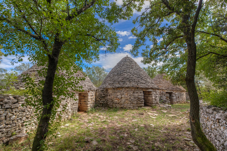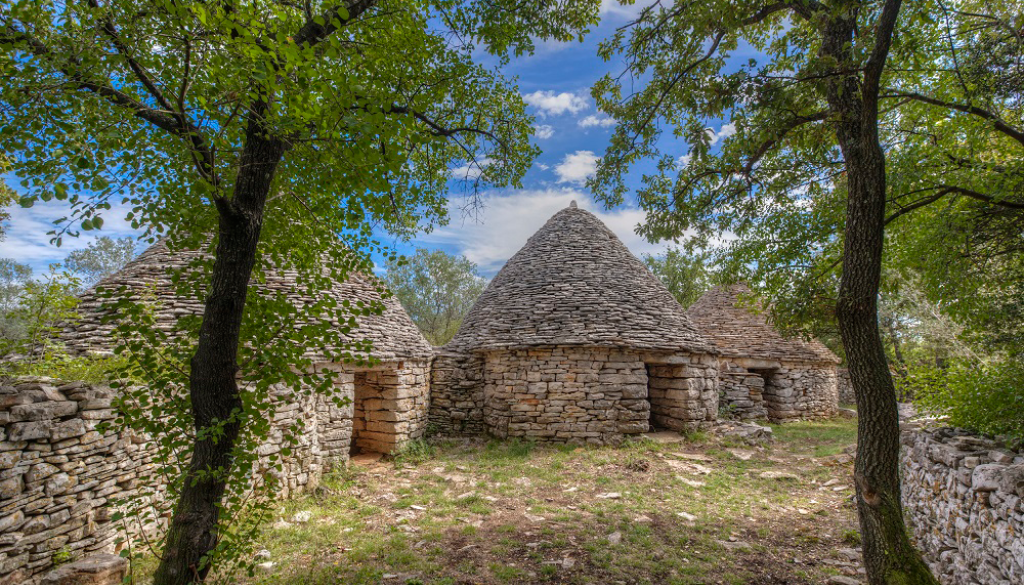 Nahaja se v okolici Vodnjana, kjer je več kot 3000 teh enosobnih hišic, ki so služile kot zatočišče za poljedelce in pastirje ter za spravljanje orodja.