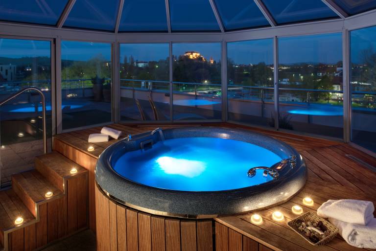 Popoldne je idealno za vodne užitke v objemu termalne vode na hotelskem kopališču Vespasianus.