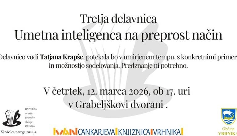 Vabimo vas na 3. delavnico Umetna inteligenca na preprost način, kjer bomo v sproščenem pogovoru raziskovali, kako umetna inteligenca vpliva na medčloveške ...