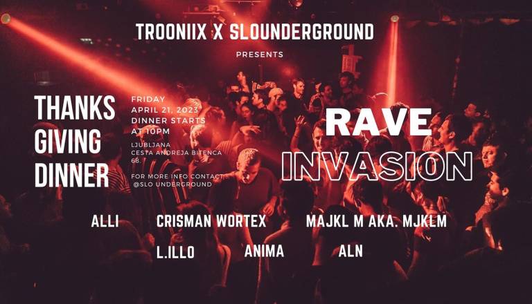 ***RAVE INVASION SLOUNDERGROUND&TROONIIX EXCLUSIVE FOR THE FIRST TIME*** Ker smo mnenja, da dobre glasbe in dobre družbe ni nikoli dovolj vas vabimo na naš ...