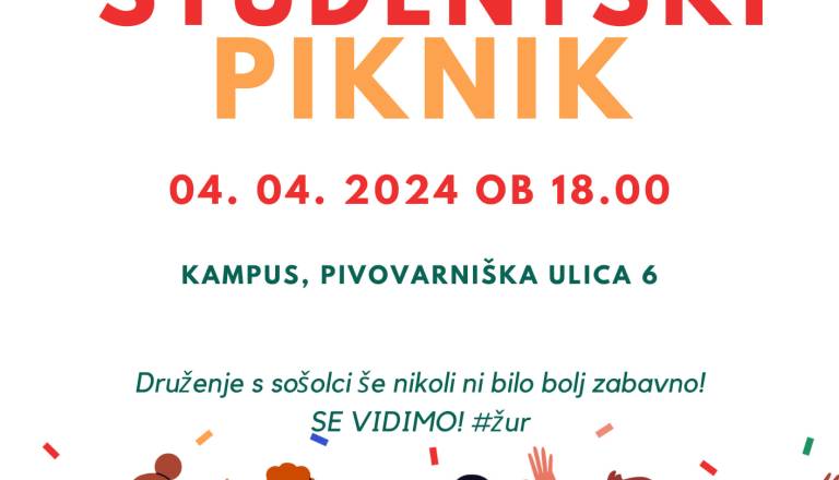 Vabimo vas na študentski piknik, ki bo potekal 4.4.2024 od 18.ure naprej na KAMPUS – u. Doživite nepozabno druženje polno zabave, odlične hrane (#čevapi) ter ...